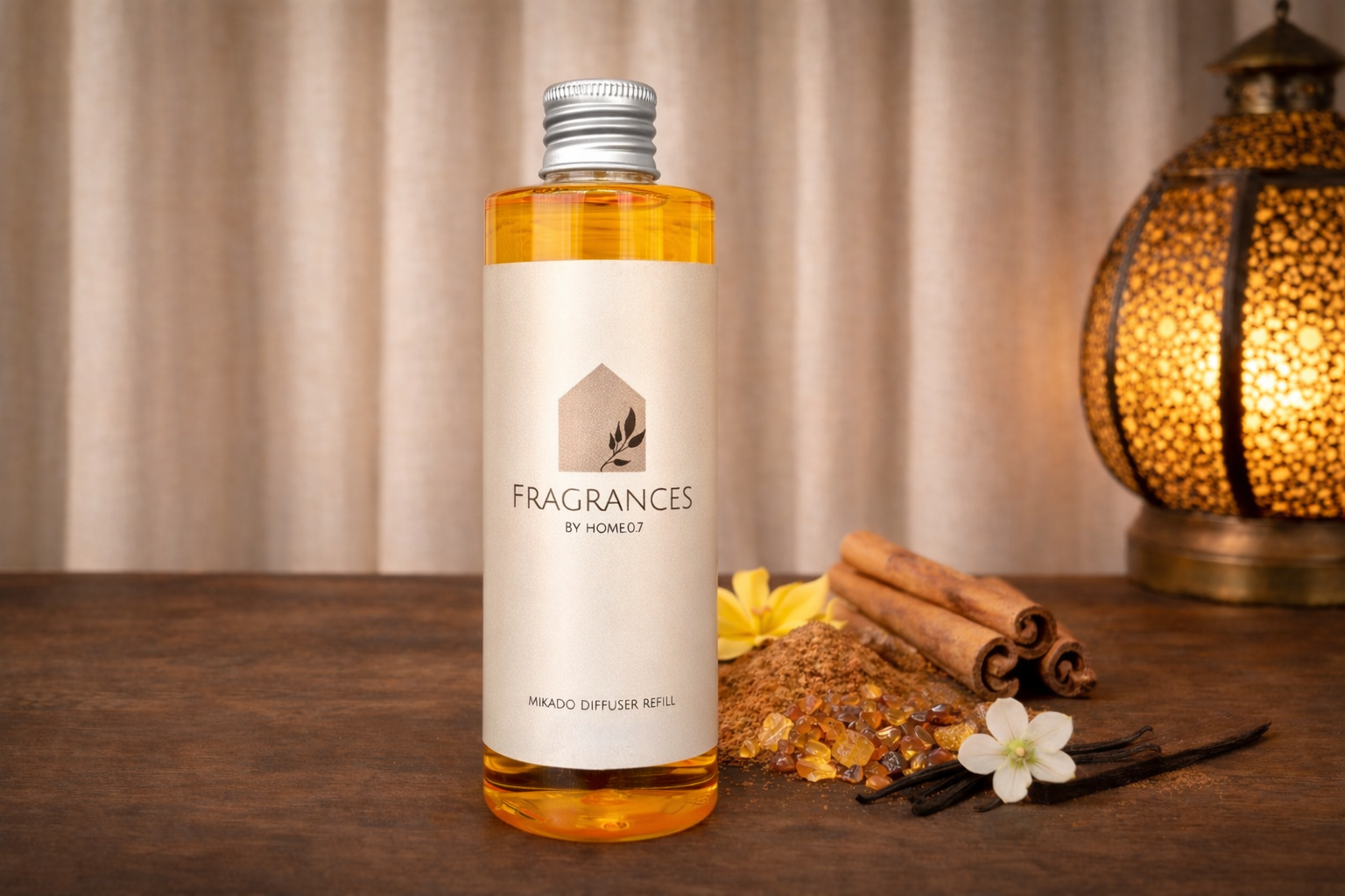 Een warme, kruidige oosterse geur met frisse citrus in de opening, een zwoel hart van ylang-ylang en kaneel, en een diepe basis van vanille, patchouli en balsem. Rijk, mysterieus en omhullend.